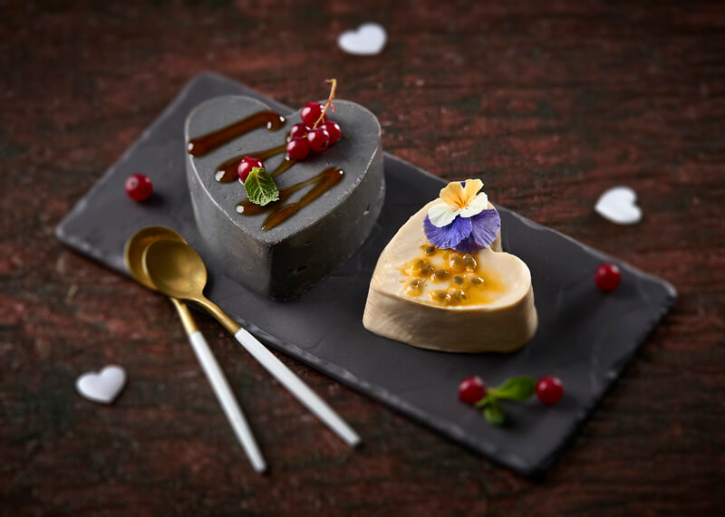 Black and white sesame blanc-manger duo: an exotic and refined delight