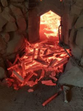 Puis, le feu est activé en limitant toujours l’apport d’oxygène. La combustion se fait à basse température. Cette étape s’appelle la carbonisation et durera environ 10 jours. La température du four atteint alors jusqu’à 1300°C voire plus.