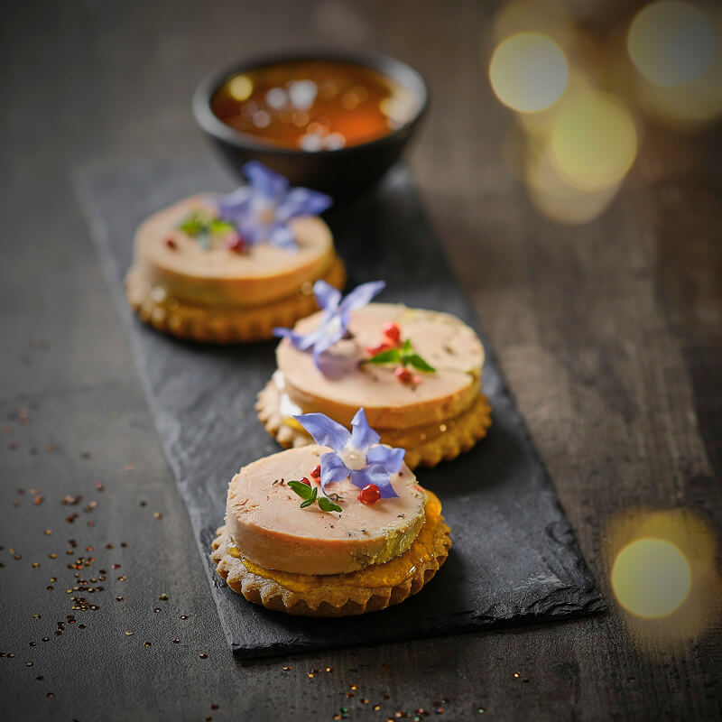 Découvrez une alliance parfaite entre la richesse onctueuse du foie gras de canard, la texture croustillante des sablés au sarrasin et la fraîcheur acidulée de la purée de yuzu. Ce trio élégant, aux influences françaises et japonaises, saura ravir les palais les plus exigeants lors de vos repas de fête ou occasions spéciales.
